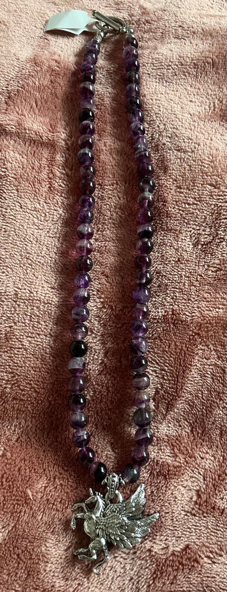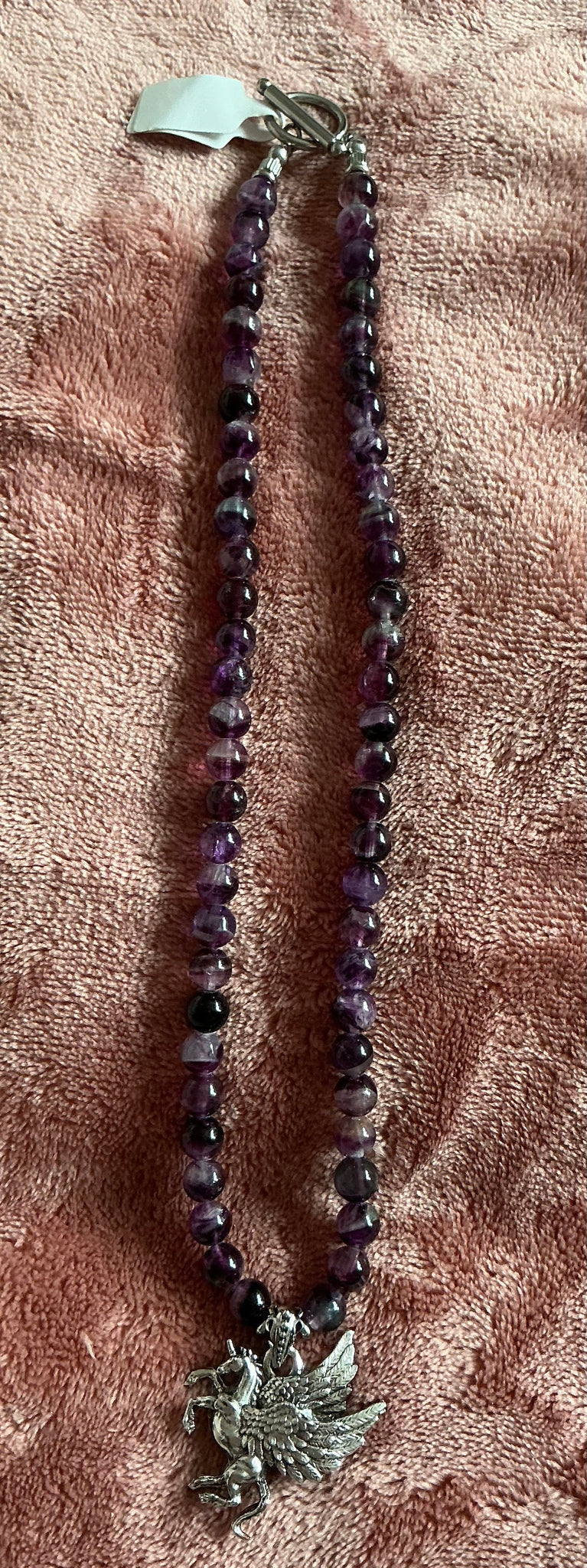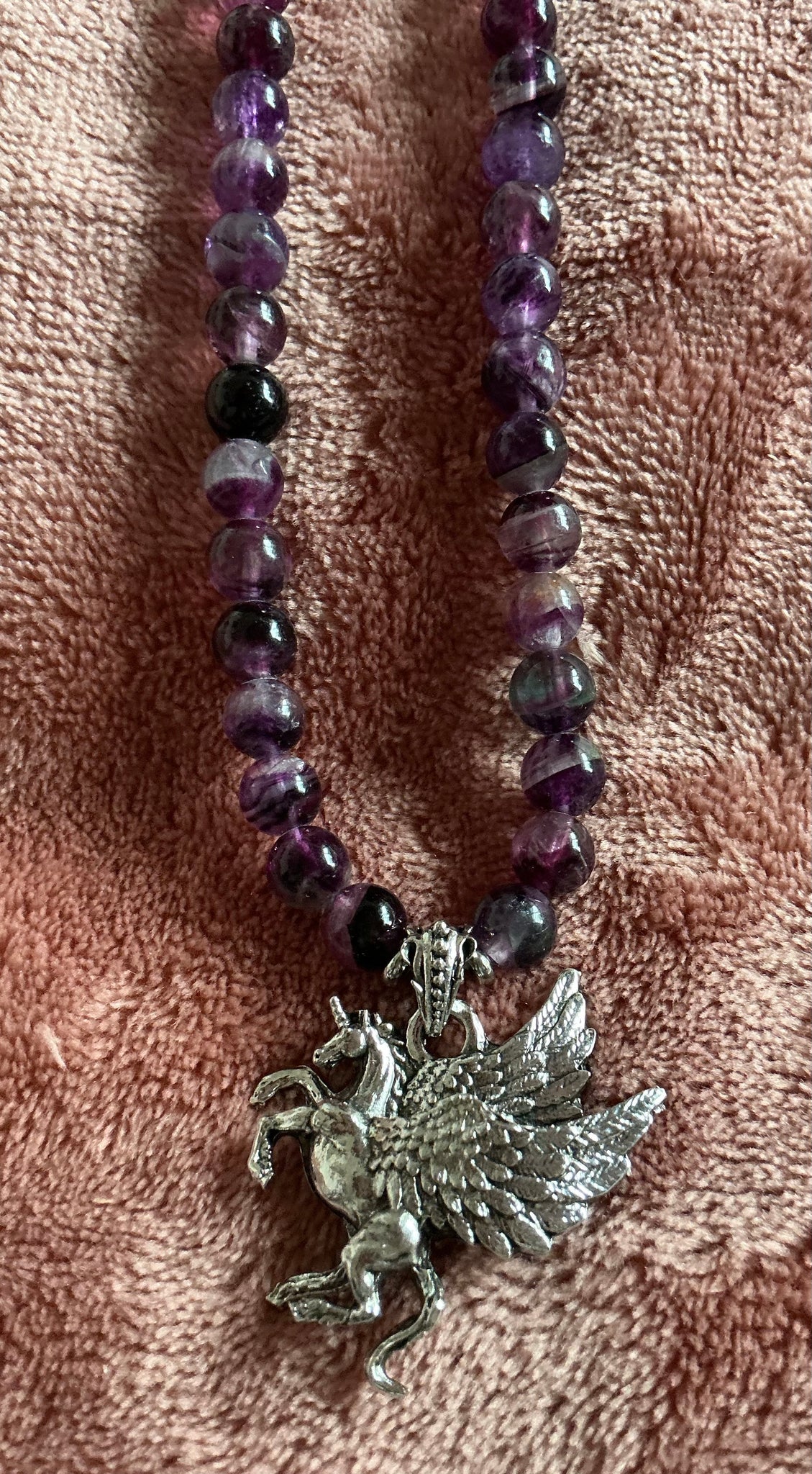 Purple and Green Fluorite Pegasus Necklace – Handmade Clarity and Freedom Talisman