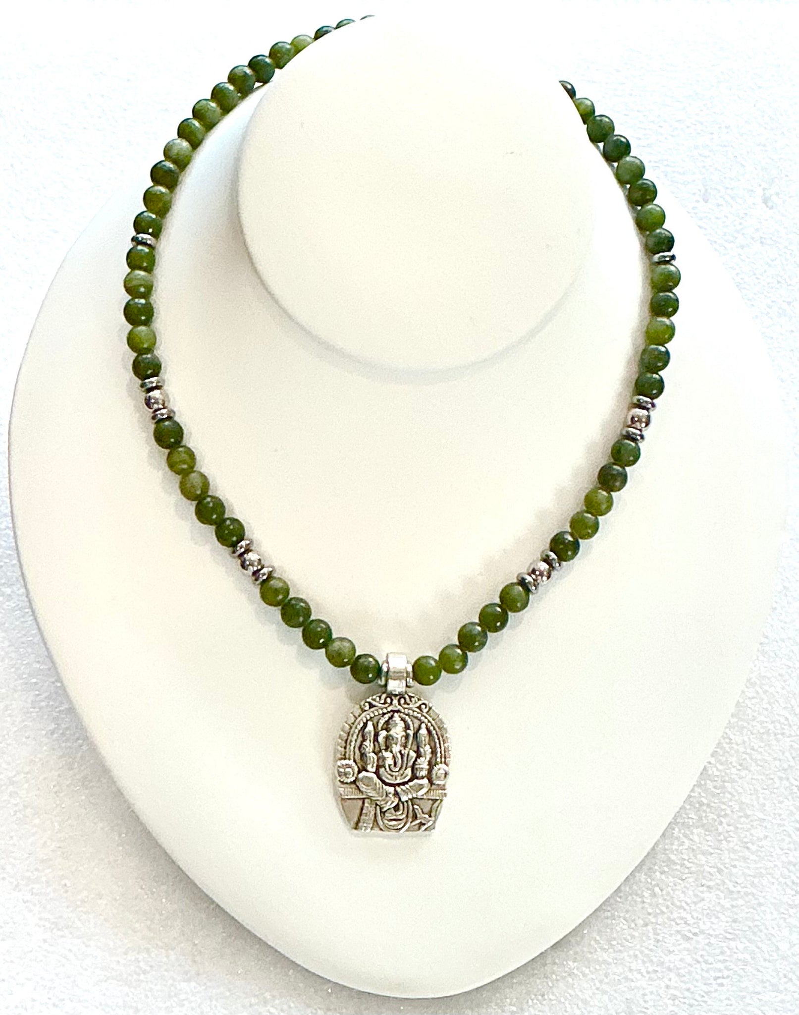 Jade Necklace with Ganesh Pendant – Handmade Sacred Jewelry