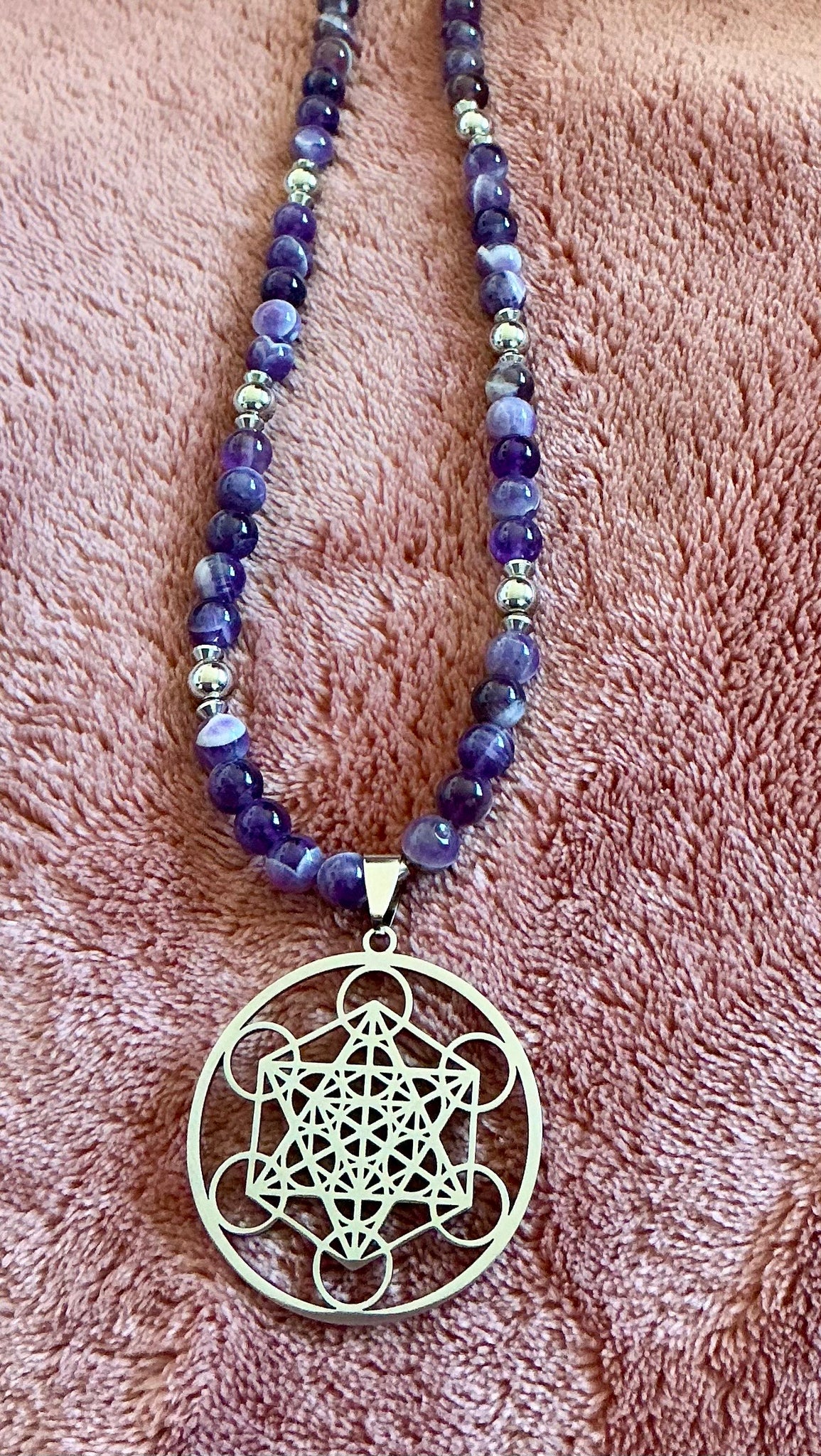 Handmade Chevron Amethyst Sacred Geometry Metatron Pendant