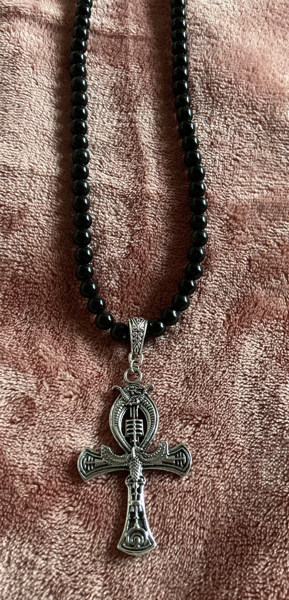 Djed Ankh Obsidian Necklace – Handmade Protection and Ancestral Power Talisman