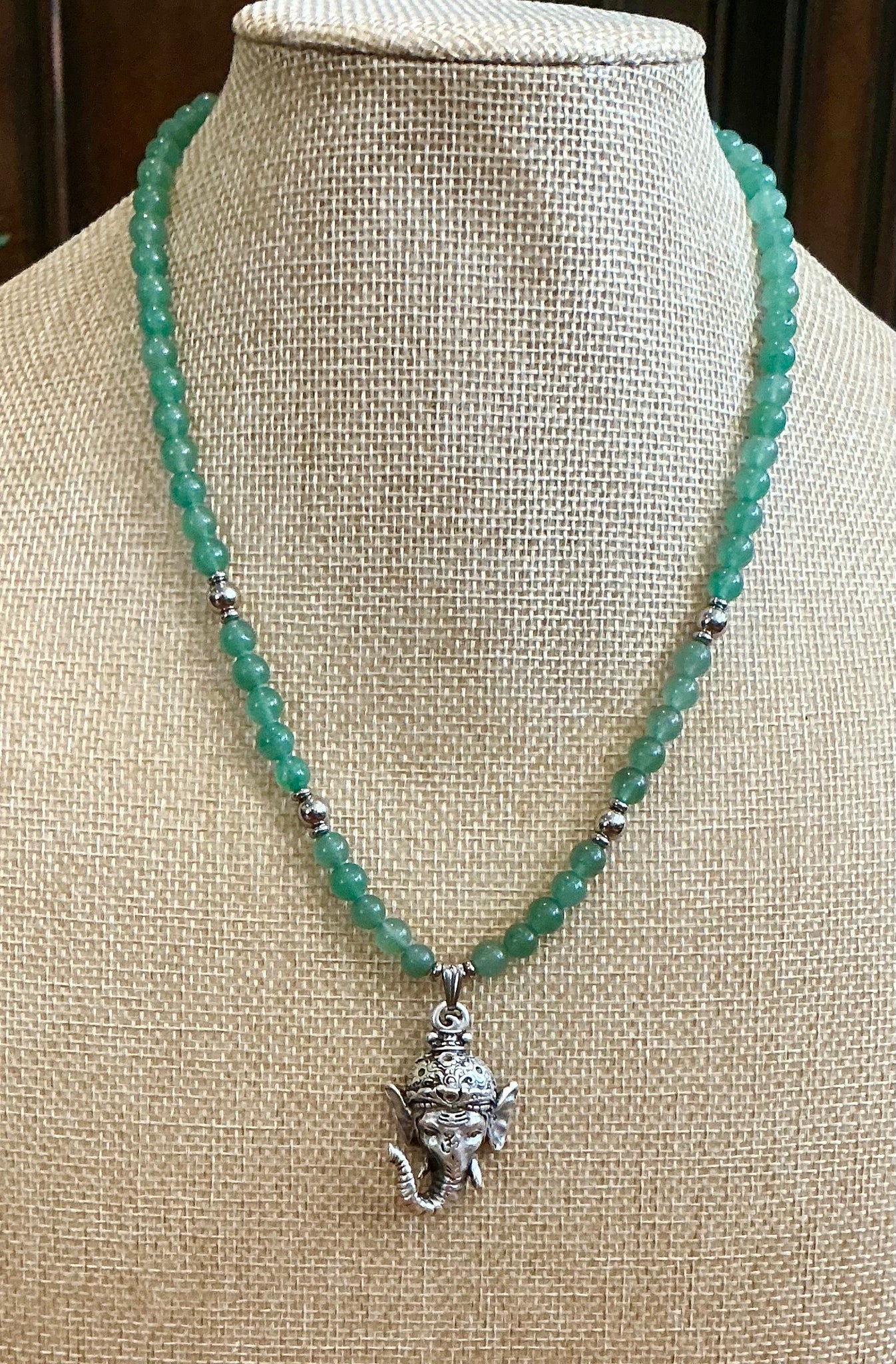 Aventurine Beaded Necklace with Ganesh Pendant – Handmade Prosperity & New Beginnings Jewelry