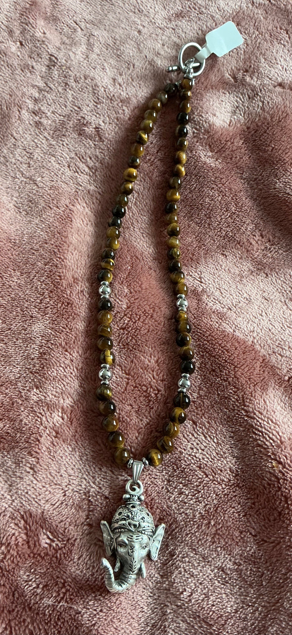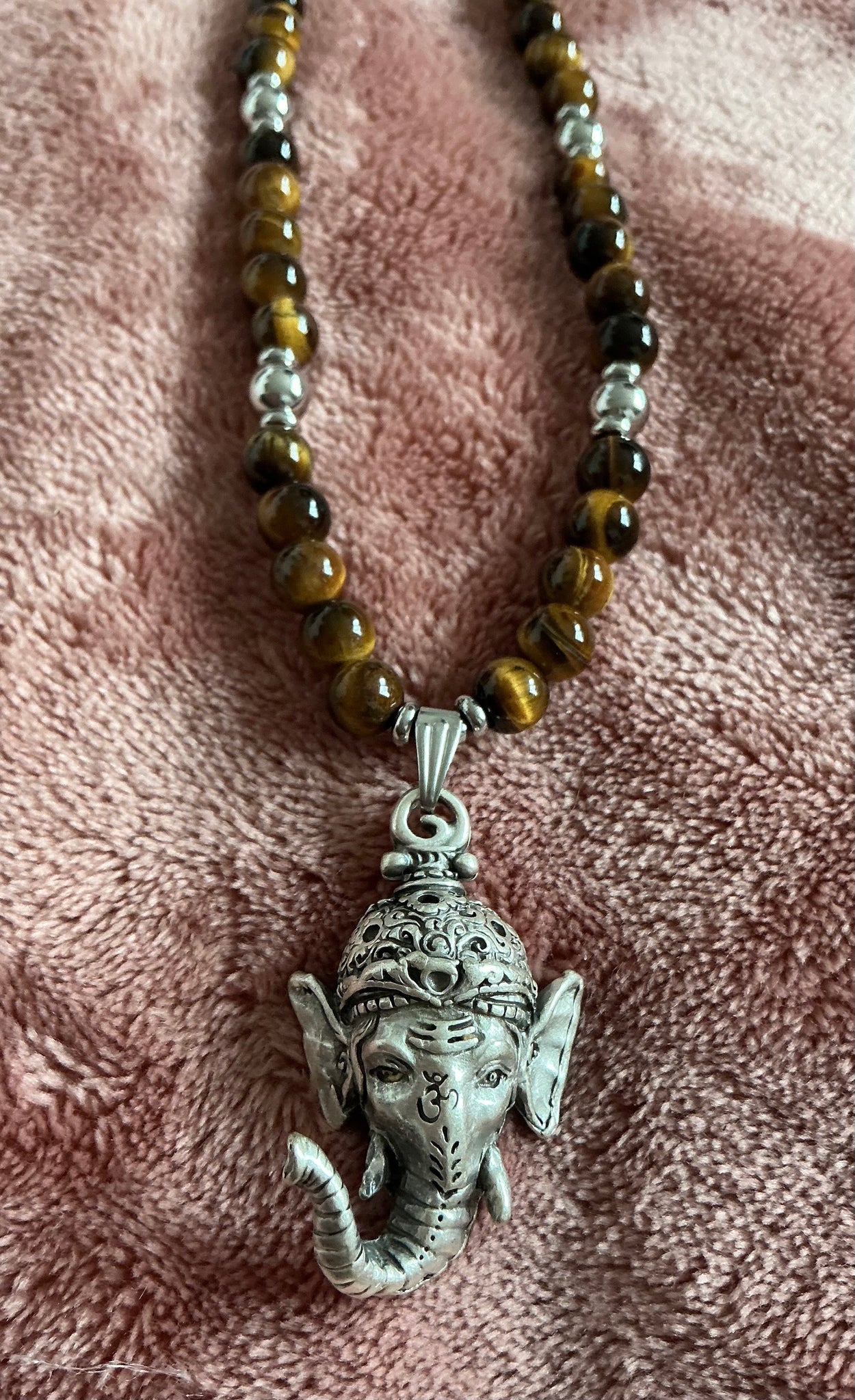 Tiger’s Eye Beaded Necklace with Ganesh Pendant – Handmade Strength, Confidence & Success Jewelry