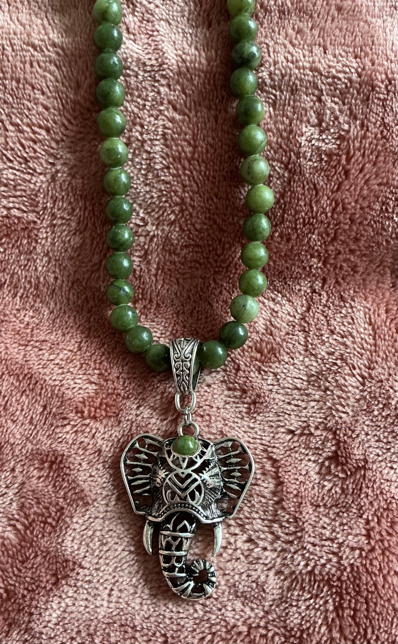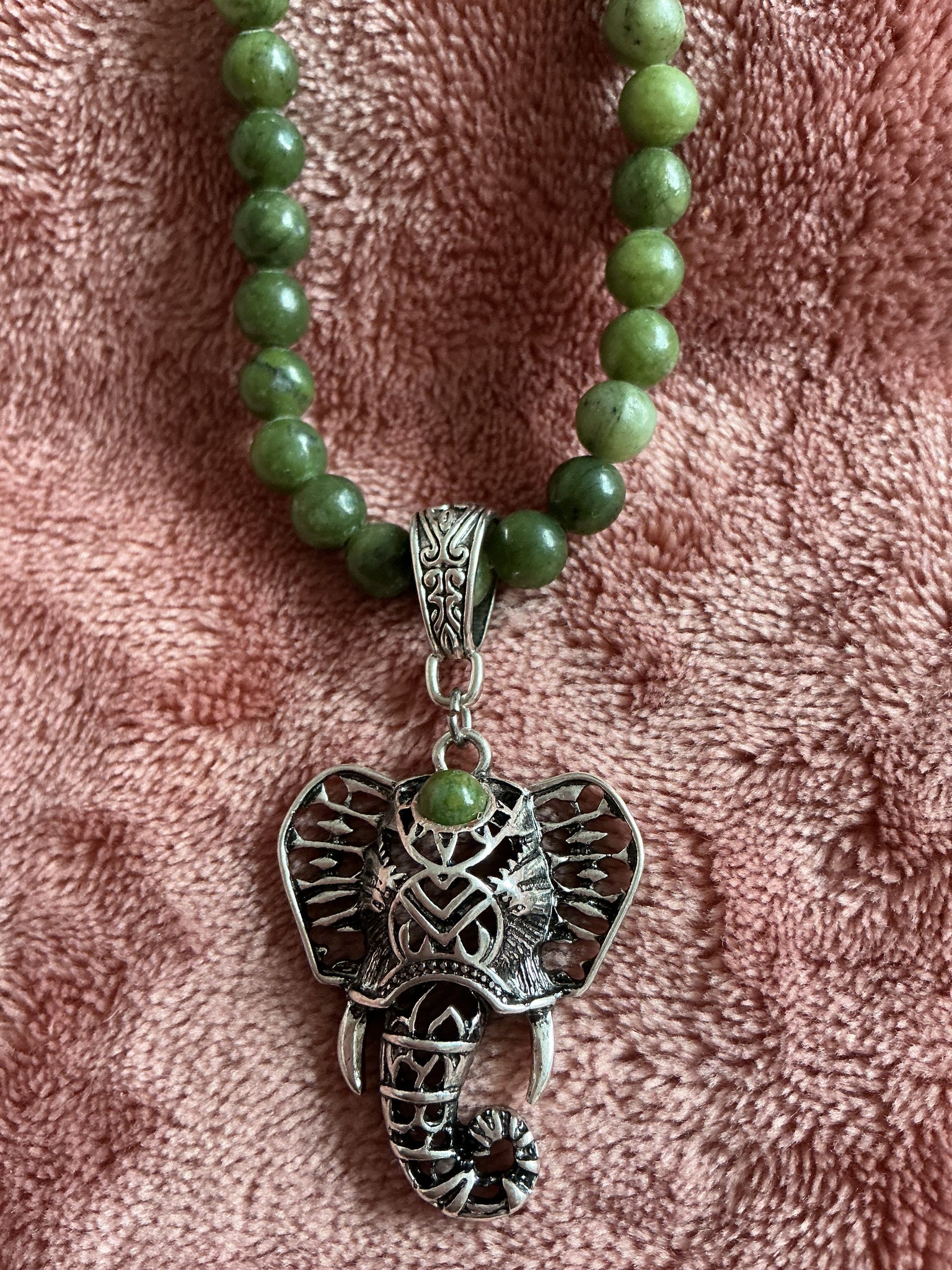 Step into wisdom, strength, and serene energy with this handmade jade beaded necklace featuring a beautifully detailed elephant pendant. Jade, known for its calming and heart opening vibrations, nurtures harmony, abundance, and emotional balance. The elephant symbolizes protection, longevity, and grounded power, making this piece a meaningful talisman for everyday wear.