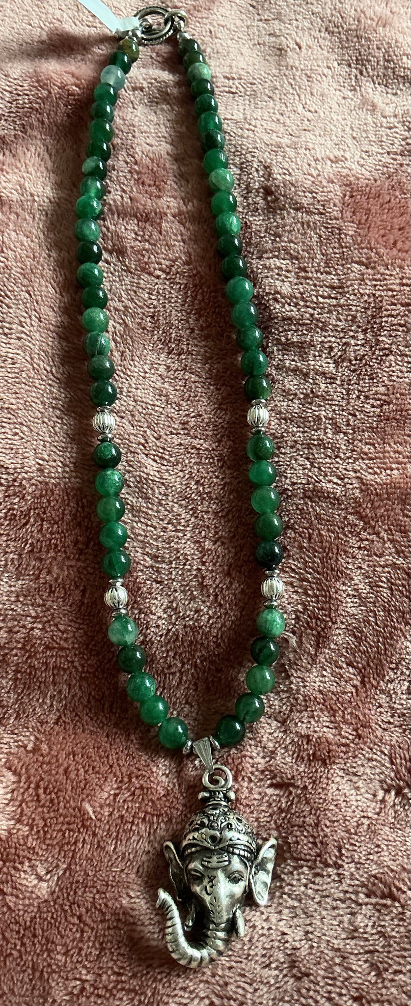 Green Mica Ganesh Necklace – Handmade Sacred Protection Jewelry