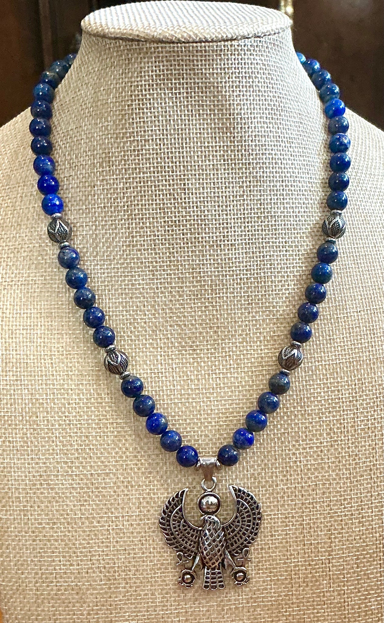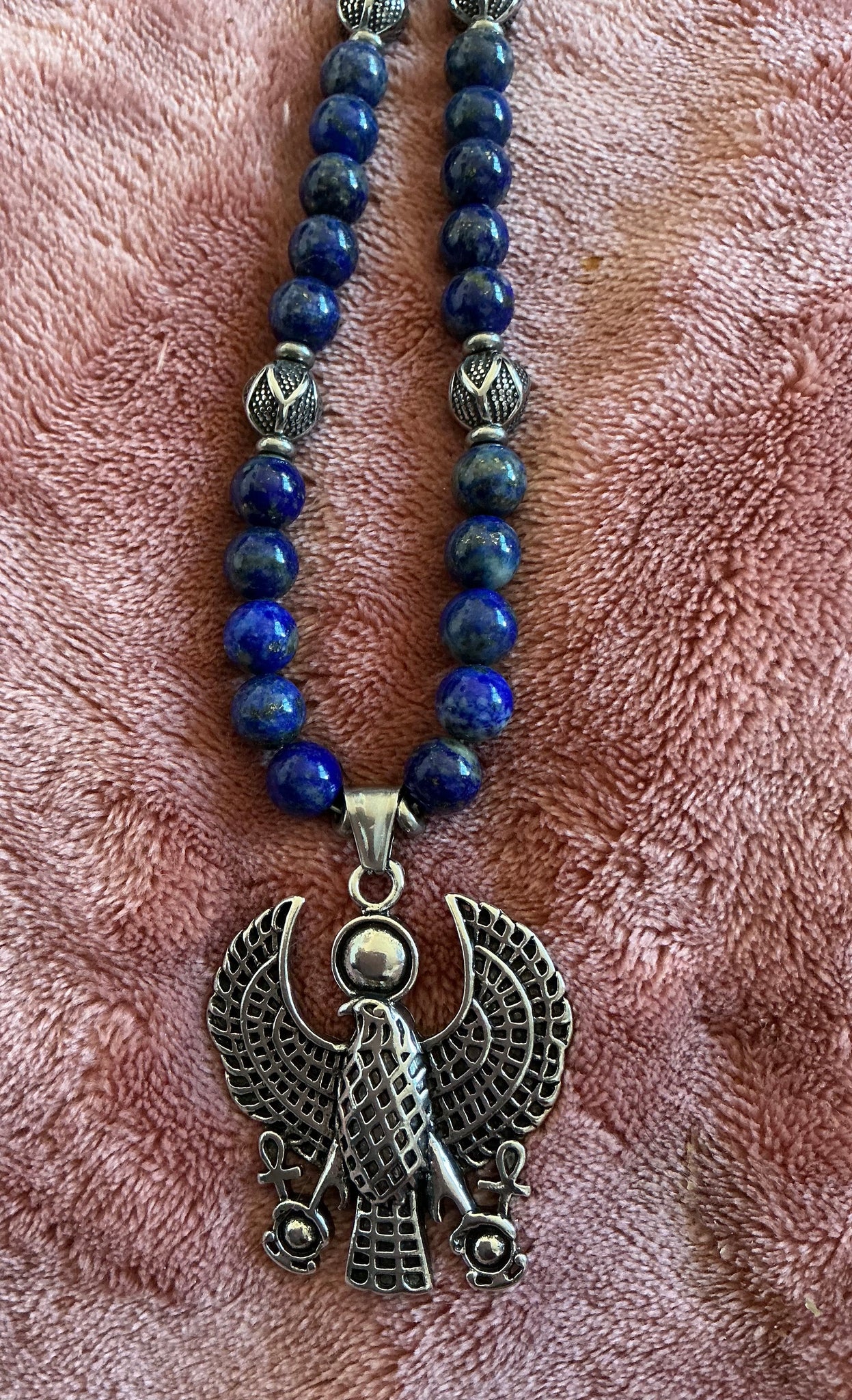 Paired with a genuine Lapis Lazuli crystal—stone of truth, royalty, and inner wisdom—this piece becomes a powerful talisman. Lapis has been revered since ancient times for activating the Third Eye, enhancing intuition, and deepening spiritual insight. Its rich blue hues echo the night sky and remind you of your innate connection to higher realms.