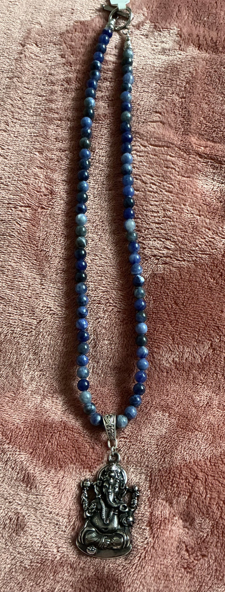 Sodalite Beaded Necklace with Ganesh Pendant – Clarity, Wisdom & Divine Guidance