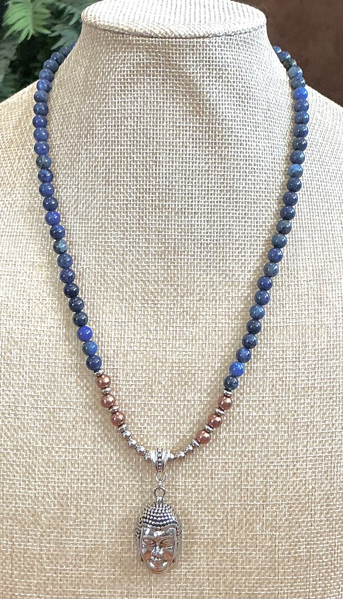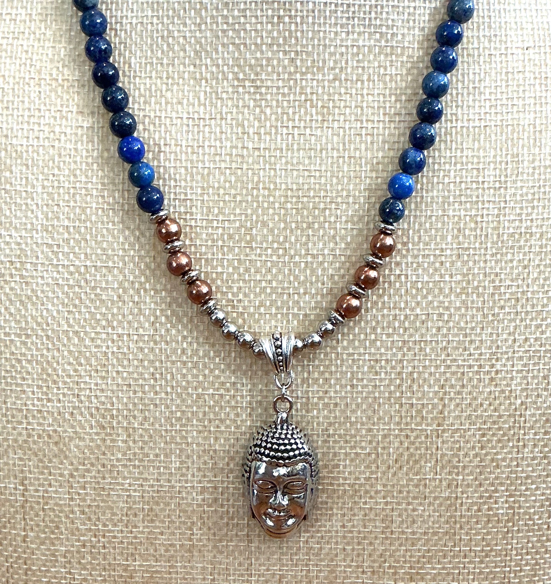 The Buddha head pendant symbolizes enlightenment, presence, and inner peace, serving as a daily reminder to move through life with awareness and compassion. Together, the lapis lazuli and Buddha pendant create a meaningful talisman for those seeking balance, authenticity, and conscious living.