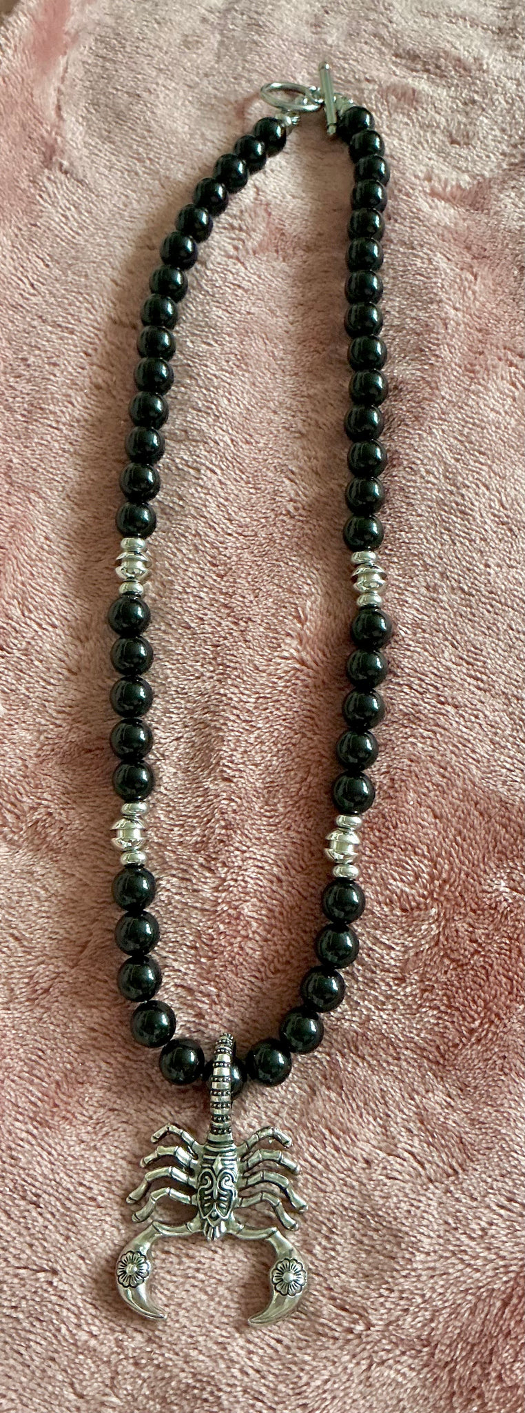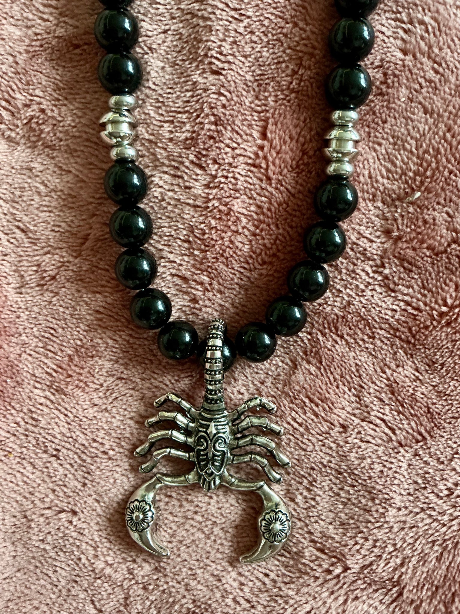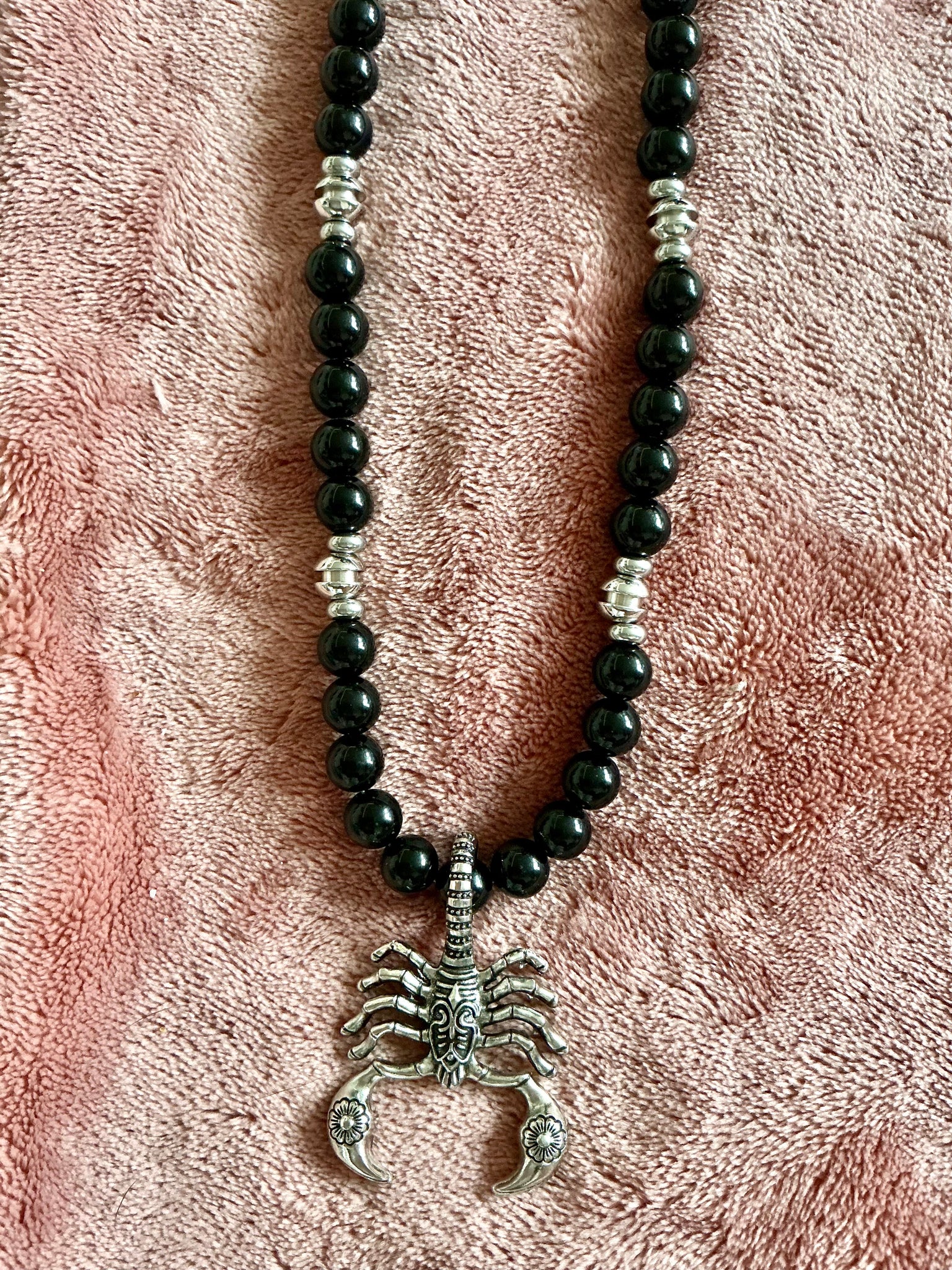 Handmade Obsidian Beaded Necklace with Scorpion Pendant